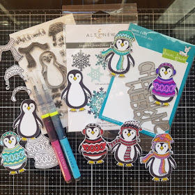 Gestempelt und gestanzt wurden sie mit dem "Cozy Penguin Bundle" von Hero Arts, koloriert mit Watercolor Brush Markern von Altenew.